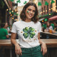 This fun St Patrick's Day t-shirt features a watercolor-style illustration of a four-leaf clover with the text ‘Happy St. Patrick’s Day’ in golden cursive lettering.