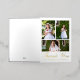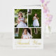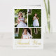 This elegant Catholic First Holy Communion thank you card features a three photo collage with real gold foil typography on the front, and a sweet thank you editable message inside with a simple gold colour cross, rustic watercolor greenery leaves, and one full photo. Only the front of this thank you card is real foil. This First Holy Eucharist thank you card is editable for a variety of Christian religious occasions, or to update to your own personal thank you message.