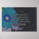 A fitness motivational poster on a dark gray slate background with a blue flower and a motivational quote for fitness success. The inspirational words on the poster are: "Four things for fitness success: healthy food and exercise, think and believe." ~ Felicity Luckey."