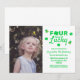 Four times lucky! 4th birthday invitation for a March or St Patrick's Day birthday. Features green shamrock and leprechaun hats. Photo template via Pixabay licensed under CC0 and must be replaced with your own photo