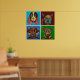 Four unique ugly dog faces with bold, colourful abstract patterns: French Bulldog, Springer Spaniel, Boxer, English Pointer. Popular with dog lovers and pet lovers and rescue dog lovers.