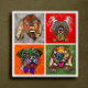 Four ugly dog faces unique abstract art poster