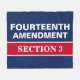 Fourteenth Amendment Section 3. The 14th Amendment Section 3 reads, "No person shall be a Senator or Representative in Congress, or elector of President and Vice-President, or hold any office, civil or military, under the United States, or under any State, who, having previously taken an oath, as a member of Congress, or as an officer of the United States, or as a member of any State legislature, or as an executive or judicial officer of any State, to support the Constitution of the United States, shall have engaged in insurrection or rebellion against the same, or given aid or comfort to the enemies thereof. But Congress may by a vote of two-thirds of each House, remove such disability." Remind people at your next outdoor political rally, or when you're sitting at and providing information at a partisan booth at a chilly autumn outdoor event, that the people responsible for the insurrection, especially its kingpin, need to be held accountable and are disqualified from public office by reason of the Fourteenth Amendment to the United States Constitution. Design description: Over the entire space, a blue background. Over the top half, the words, "Fourteenth Amendment." Over the bottom half, a wide stripe in patriotic red, edged on the top and bottom in white, and in the centre of that stripe the words "Section 3" in an all-caps white serif font.