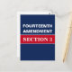 Fourteenth Amendment Section 3. There is a horizontal and vertical version with the text of the Amendment on the back, and a vertical version version with the text of the Amendment on the front of the card, all in the same collection. Remind your Congresspeople, including the ones who helped plan, but failed, to throw away all of your state's votes through abusing the electoral college in 2020, and your friends and neighbours, that insurrectionists are disqualified from holding public office. The back of the card contains the text of Section 3 of the 14th Amendment, which reads, "No person shall be a Senator or Representative in Congress, or elector of President and Vice-President, or hold any office, civil or military, under the United States, or under any State, who, having previously taken an oath, as a member of Congress, or as an officer of the United States, or as a member of any State legislature, or as an executive or judicial officer of any State, to support the Constitution of the United States, shall have engaged in insurrection or rebellion against the same, or given aid or comfort to the enemies thereof. But Congress may by a vote of two-thirds of each House, remove such disability." The text underlined in red reads when put together, "No person shall hold any office, civil or military, under the United States who, having previously taken an oath as an officer of the United States to support the Constitution of the United States, shall have engaged in insurrection or rebellion against the same." Remind people that the people responsible for the insurrection, especially its kingpin, Donald Trump, need to be held accountable and are disqualified from public office by reason of the Fourteenth Amendment to the United States Constitution. Trump held the Office of the President, he was in charge of the military, and on his inauguration day, he swore this oath, in front of all of us, "I do solemnly swear that I will faithfully execute the Office of President of the United States, and will to the best of my ability, preserve, protect and defend the Constitution of the United States." Design description: Over the entire space, a blue background. Over the top half, the words, "Fourteenth Amendment." Over the bottom half, a wide stripe in patriotic red, edged on the top and bottom in white, and in the centre of that stripe the words "Section 3" in an all-caps white serif font. Back design is split into two halves. The right half contains the text of the Fourteenth Amendment Section 3, with parts underlined as described above. The right has space for the address and stamps.