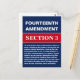Fourteenth Amendment Section 3. There is a both a horizontal and vertical version with the text of the Amendment on the back and a horizontal version that is blank on the back (except for the parts necessary to mail the postcard) in the same collection. Remind your Congresspeople, including the ones who helped plan, but failed, to throw away all of your state's votes through abusing the electoral college in 2020, that insurrectionists are disqualified from holding public office. The back of the card contains the text of Section 3 of the 14th Amendment, which reads, "No person shall be a Senator or Representative in Congress, or elector of President and Vice-President, or hold any office, civil or military, under the United States, or under any State, who, having previously taken an oath, as a member of Congress, or as an officer of the United States, or as a member of any State legislature, or as an executive or judicial officer of any State, to support the Constitution of the United States, shall have engaged in insurrection or rebellion against the same, or given aid or comfort to the enemies thereof. But Congress may by a vote of two-thirds of each House, remove such disability." The text underlined in red reads when put together, "No person shall hold any office, civil or military, under the United States who, having previously taken an oath as an officer of the United States to support the Constitution of the United States, shall have engaged in insurrection or rebellion against the same." Remind people that the people responsible for the insurrection, especially its kingpin, Donald Trump, need to be held accountable and are disqualified from public office by reason of the Fourteenth Amendment to the United States Constitution. Trump held the Office of the President, he was in charge of the military, and on his inauguration day, he swore this oath, in front of all of us, "I do solemnly swear that I will faithfully execute the Office of President of the United States, and will to the best of my ability, preserve, protect and defend the Constitution of the United States." Design description: Over the entire space, a blue background. Over the top half, the words, "Fourteenth Amendment." Over the bottom half, a wide stripe in patriotic red, edged on the top and bottom in white, and in the centre of that stripe the words "Section 3" in an all-caps white serif font. Back design is split into two halves. The right half contains the text of the Fourteenth Amendment Section 3, with parts underlined as described above. The right has space for the address and stamps.