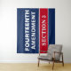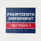 Fourteenth Amendment Section 3. The 14th Amendment Section 3 reads, "No person shall be a Senator or Representative in Congress, or elector of President and Vice-President, or hold any office, civil or military, under the United States, or under any State, who, having previously taken an oath, as a member of Congress, or as an officer of the United States, or as a member of any State legislature, or as an executive or judicial officer of any State, to support the Constitution of the United States, shall have engaged in insurrection or rebellion against the same, or given aid or comfort to the enemies thereof. But Congress may by a vote of two-thirds of each House, remove such disability." Remind people that the people responsible for the insurrection, especially its kingpin, need to be held accountable and are disqualified from public office by reason of the Fourteenth Amendment to the United States Constitution. Design description: Over the entire space, a blue background. Over the top half, the words, "Fourteenth Amendment." Over the bottom half, a wide stripe in patriotic red, edged on the top and bottom in white, and in the centre of that stripe the words "Section 3" in an all-caps white serif font.