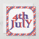 A 4th of July party invitation featuring the text 4th July. The invitation is framed with a border of red and blue stripes and stars.