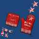 Cool graphics celebrating American Independence day fills one with a sense of patriotism and bravery. Fourth of July Firecrackers, stars - fun Oven Mitt & Pot Holder Set for newly weds. The design features American Flag pattern in a deep red background. You can easily personalise the text by clicking the 'Customise' Button with your choice of format & style. Perfect gift for Anniversary/Weddings/American Independence Day. If you like this artwork, you can visit my holidays_festivals store for matching/similar items.
