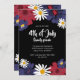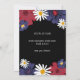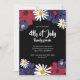 Retro style Fourth of July party invite. Red, white and blue flowers on a black background. Personalise the front and back with your party details!