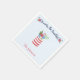 A Fourth of July America the Beautiful Napkin, this personalised item features your "America the Beautiful" written in lovely blue font with a red and white jar full of red, white, and blue flowers in it. Your name/text is written underneath in red font. The design is on a light blue background with white stars. Great for a 4th of July cookout, thank you for shopping at "Rhoadie's Kitchen".