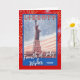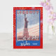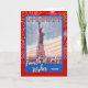 Happy Fourth of July, Independence Day for Mum. Paper greeting card for the Fourth of July features a vintage retro illustration of the Statue of Liberty with a U.S.A. flag behind her in the sky. She is surrounded by fireworks. Frame is dark red. Art, image, and verse copyright © Shoaff Ballanger Studios, 2023.