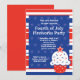 This red white and blue Fourth of July party invitation features stars and stripes and a fun cupcake. It's the perfect way to invite family and friends to your next 4th of July fireworks party. Some elements of this card © Goodness and Fun