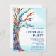 It is decorated with a mosaic tree and a watercolor blue sky.