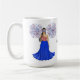 Fourth of July Fashion Illustrations with big fireworks in the background mug. Cute and feminine drawing of a woman in a striped shirt and a long blue skirt. She is also wearing blue star sunglasses. Cute and unique 4th of July mug design for summer. Add a name to make it more personalised.