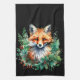 A little red fox peers out from holly branches accented with bright, red berries in this charming watercolor on a Christmas towel. Perfect for anyone who loves foxes, nature, and wildlife.