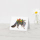 A squirrel rides a fox who is carrying the harvest feast on his back. Send this unique wild animal card for Thanksgiving or for a dinner party invitation.