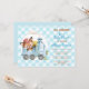 This adorable baby shower invitation features little brown fox wearing a red engineer's cap while rings the bell on the front of his train locomotive. A curl of white smoke comes out of the engine's smokestack. The image is framed in a thin blue line circle, and set against a blue gingham like background. Your information is in blue and matching brown in custom text fields at the right. The back of the invitation is solid blue. Be sure to see the matching products in our store.