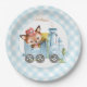 Fox and Train Gingham Blue Baby Shower Paper Plate