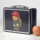 This is a standard metal lunchbox that appears to work just fine. We designed this box ourselves with an uploaded photo and custom text on the front and back. It looks absolutely beautiful except the front of the lunchbox is not centered like it shows in the photo. The print borders don't align with the inset flat part of the box where the preview photo online showed it perfectly centered in there. The back looks nice and centered though.