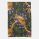 Fox, bellflowers and ivy, green, orange and viole Tea Towel