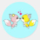 Fox Couple Kissing with Little Hearts Overhead Classic Round Sticker