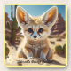 A cute Fennec fox sits gracefully in the desert, its large ears and soft fur catching the golden sunlight. This small, charming creature adds a touch of warmth to the vast, arid landscape.