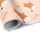 Kids name fox animal wrapping paper with a pattern of cute cartoon fox faces on a light orange background.