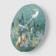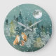 Fox Family in Forest Full Moon Snowfall Large Clock