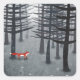 A wild red fox stands among the pine trees in a dark forest. A landscape painting for wildlife, nature and animal lovers.