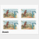 Fox Frog Fishing Antique Illustration Rectangular Sticker