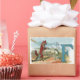 The vintage fox is carrying his catch, and he's holding his oars over his shoulder. He stops to talk to the little frog after leaving his little boat at the beach. A sailboat is seen in the distance. This is a wonderful old-fashioned drawing for fox and frog collectors.