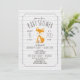 A baby shower invitation featuring an illustration of a baby fox. Personalise the text. Background is light grey wood inspired design.