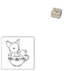 Adorable little fox with big ears and bushy tail is sitting in a teacup decorated with flowers.