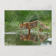 Fox - beautiful colour nature photograph of a wild fox and reflection as fox is stepping into a pond surrounded by greenery.