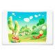 Fox in the wood. Funny cartoon scene.