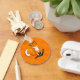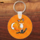 Take your little fox friend on your keys! Image is little fox smiling on a orange paw background.