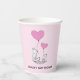 Fox Kit and Pink Heart Balloons Design Paper Cups with customizable text and background color.