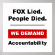 FOX Lied. People Died. WE DEMAND Accountability. Protest sign.