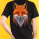 your majestic geometric fox t-shirt design, featuring deep black and grey tones, an simple background, and black eyes for a powerful and simple look.