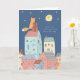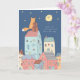 Greeting card depicts a cute watercolor fox playing a contrabass at night on the rooftop with stars shining and the words, "Night time is the right time for a love song."*