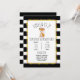 A birthday party invitation featuring an illustration of a baby fox wearing a flower crown. Personalise the text. Background is black and white stripes with pompom design.