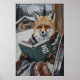 Fox Reading Ski Art Print Motivational Winter Lodge Wall Cabin Mountain Alpine Gift