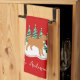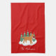 Fox Red Labrador Christmas Evergreen Trees Kitchen Towel for dog lovers who love Labradors. Beautiful Fox Red Labrador Silhouette design with Santa Hat. Snow and evergreen trees. Created by Naomi Ochiai.