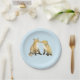A watercolor painting of two red fox kits in the spring adorns these paper plates!