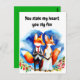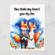 Fox valentines greeting card features fox wedding couple in love with phrase You stole my heart you sly fox