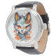 Transform this captivating t-shirt design into a stunning watch face that celebrates nature and artistry. The vibrant fox illustration, with its piercing orange eyes and fur blending blue, orange, and white, will create an unforgettable visual impact. Surrounding autumn leaves and dynamic orange splashes add a seasonal charm to the design. This watch face will not only be a functional accessory but also a miniature piece of wearable art.