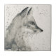 Fox vintage tile. Black and white animal art.