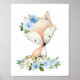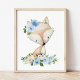 Fox, Woodland Animals, Boho, Blue Flowers Poster