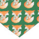 A unique repeat patterned fox wrapped up warm with a green scarf and his tail cute watercolor art table runner in green, orange red and cream. Background colour can be changed to your own colour choice currently dark green. Fox animal painting and design by Sarah Trett.