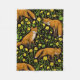 Foxes and buttercups on black fleece blanket